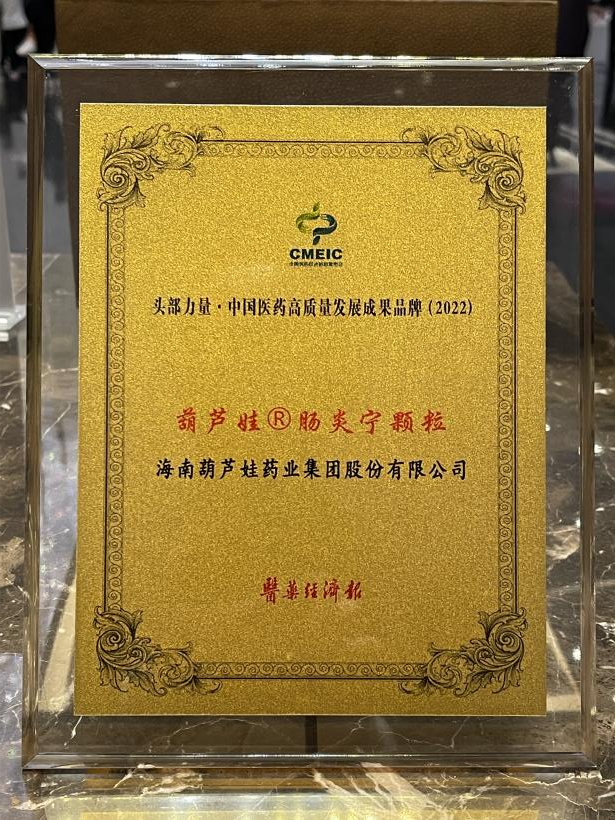 在本次发布会上,公司重点产品k8凯发牌肠炎宁颗粒同时荣膺“头部力量·中国医药高质量发展成果品牌(2022)”。k8凯发牌肠炎宁颗粒(2g),传承经典名方,临床广泛用于成人及儿童急慢性胃肠炎、腹泻等疾病的治疗,由于其杰出的临床价值,被纳入国家中医药管理局相关专家项目组制定的《中成药治疗小儿腹泻病临床应用指南》。